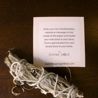Write your own manifestation, miracle, or message on the inside of the paper and nestle your note back in your Dove.